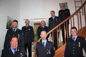Unser Foto unten zeigt von links (vordere Reihe) die Geehrten Konrad Lechner, Franz Seidinger, Franz Brummer und hinten stehend von links Josef Maurer, Kreisbrandinspektor Stephan Hangl, Kommandant Florian Hasieber, Andreas Freiberger und Kreisbrandmeister Hermann Kratz.