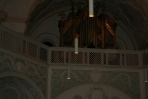 In stetem Wechsel zwischen den Blechbläsern und der Orgel wurde dem Zuhörer eine bunte Palette an festlicher Musik geboten: Johann Sebastian Bach und Georg Friedrich Händel stehen natürlich für eine festliche barocke Musik, die in dieser Kirche, eine Inschrift verweist auf das Jahr 1713, natürlich ihre architektonische Heimat finden kann.