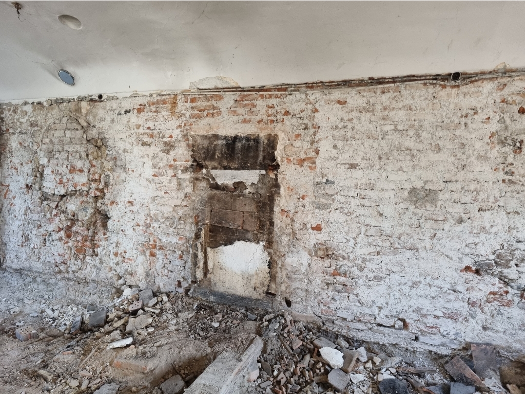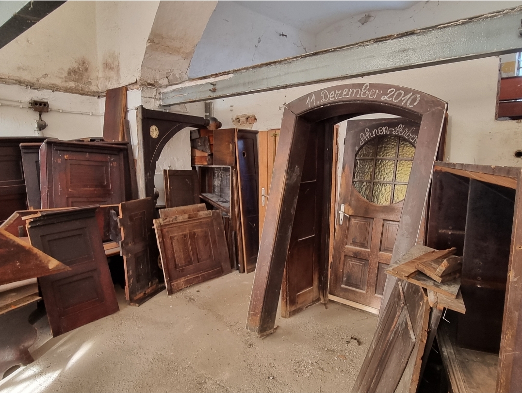 Dort, wo die Schenke war, kommt der Durchgang Richtung Küche, die Außenfassade wird wieder hergerichtet, der Zahn der Zeit nagte, zusätzlich machte starker Hagel dem Gebäude zu schaffen. „Die Wiederherstellung der Fassade ist Teil der Sanierung“, verspricht Linner.