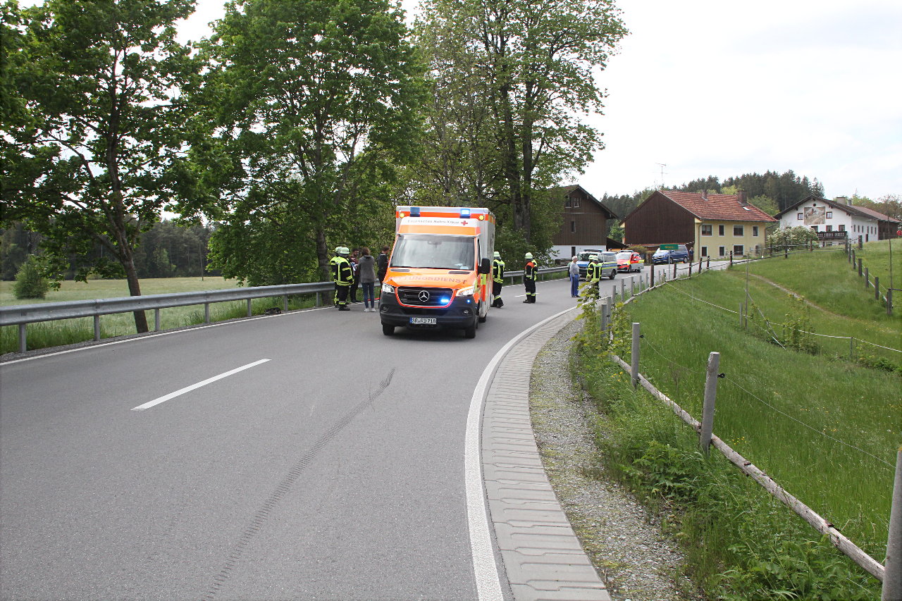 Ein 17-Jähriger aus dem Landkreis Rosenheim fuhr mit seinem Leichtkraftrad auf der Staatsstraße 2357 von Schnaitsee kommend in Richtung Wasserburg und B304. In einer Rechtskurve, kurz nach der Kreuzung bei Edenkling, verlor der junge Fahrer die Kontrolle über sein Fahrzeug, stürzte und rutschte gegen eine Leitplanke. Unter dieser kam er zum Liegen und wurde bis zum Eintreffen des Rettungsdienstes und Notarztes durch Ersthelfer versorgt.