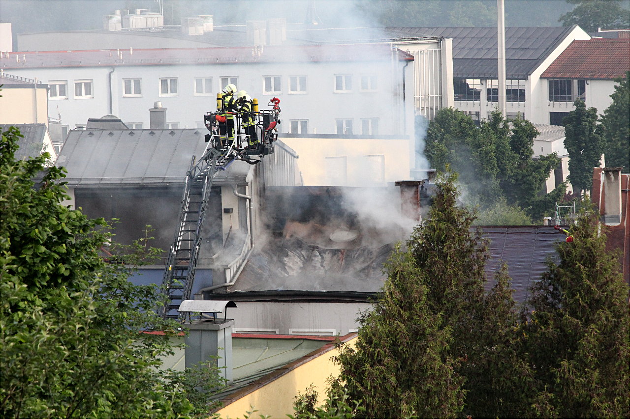 THW soll Mauern abstützen - Die Bilder vom Brand heute Morgen in der Wasserburger Altstadt