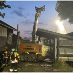 Doch jetzt der traurige Blick in die harte Realität, der in den späten Abendstunden des Mittwochs bereits mit dem Bagger abgetragen wird, um ein unkontrollieres Einstürzen der Außen-Gewerke zu vermeiden. Der einstige Stall ist Opfer der Flammen von Mittwochnachmittag geworden. (wir berichteten)