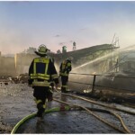 Bis in die Nacht hinein, wurde weiter gelöscht. Das THW unterstützte durch gezieltes Ausleuchten der Fläche. Das BRK kam mit Verpflegung für die Einsatzkräfte.
