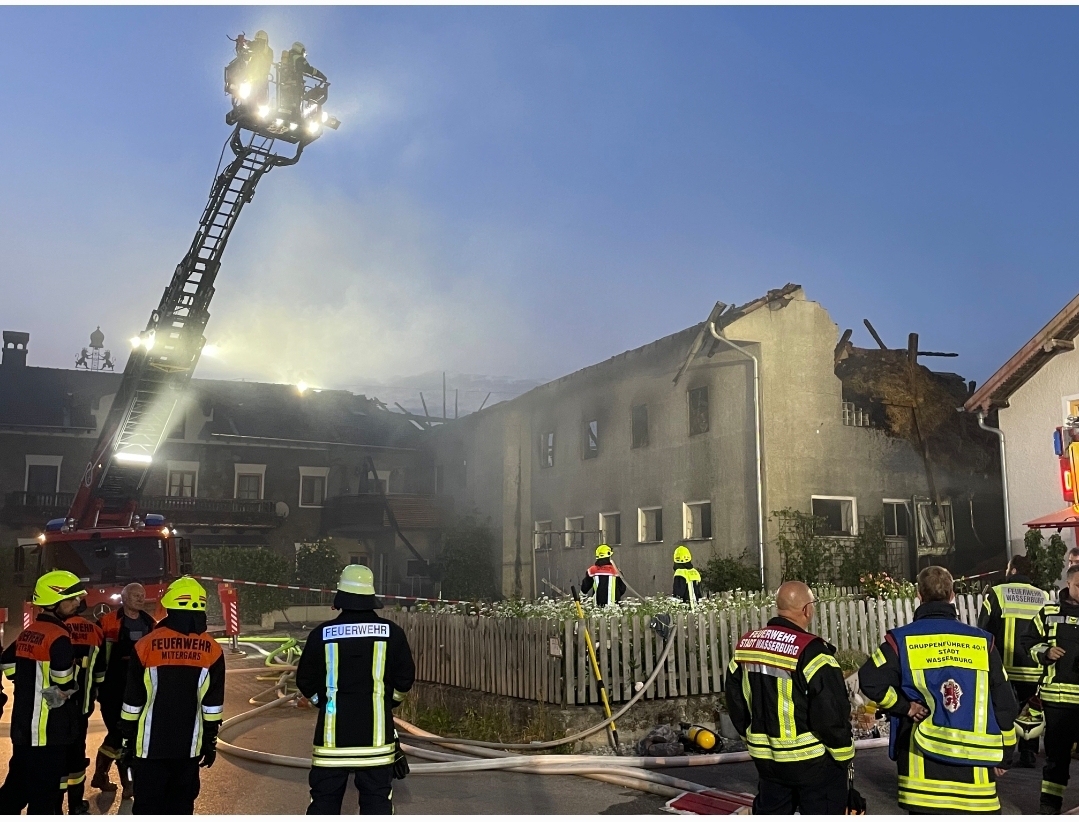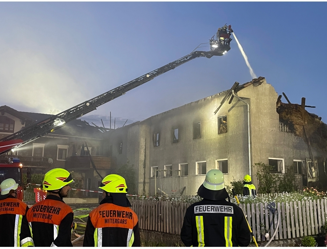 Das große Vorhaben der Feuerwehen aus dem Altlandkreis: Den Brand derart unter Kontrolle zu bringen, dass das Wohnhaus der Mittergarser Familie nicht ebenfalls Feuer fängt. Die Realität zeigte sich zügig, der Heuboden und die Verbindung zum Wohnhaus wurden vom Feuer eingeholt, bevorauch das Wohnhaus selbst brannte.