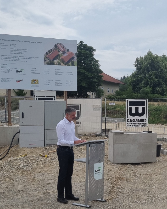 Auch Wasserburgs Bürgermeister Michael Kölbl schaute zur Grundsteinlegung im benachbarten Amerang vorbei. Kölbl fungiert als Aufsichtsrats-Vorsitzender der GWG.